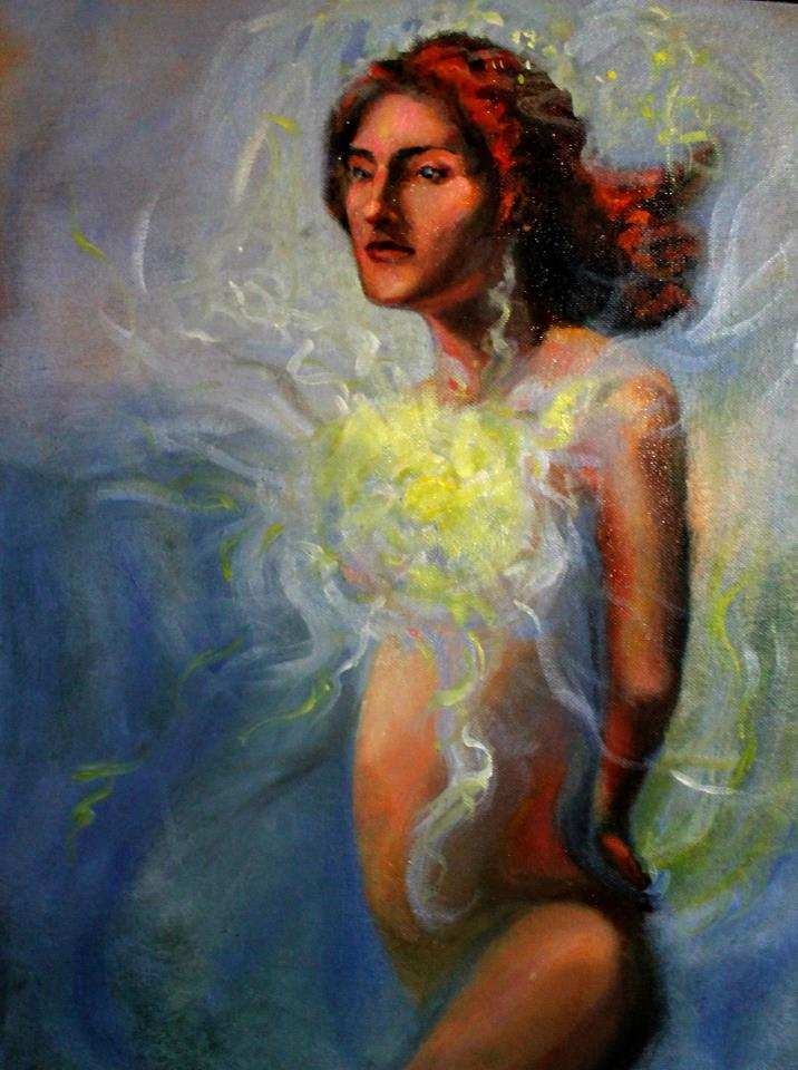Another artist, Carrie, was inspired to create a painting after experiencing a group Multi Dimensional Healing: "Here's a painting I did. I'm calling it "Sacred Rose"... She writes: "It's still a work in progress trying to illustrate the feeling of opening the heart chakra. The energy was interesting at the healing. It felt very cleansing and felt as if my nose was breathing pure, clean air. Crisp, as if the breath was activating, charging the air. It did cleanse my sinuses. When I got home, the 'clean' antiseptic energy became thicker, more palpable. It spread throughout my body, everywhere and anywhere, and out! Even my eyes feel different. My nostrils are still flaring!