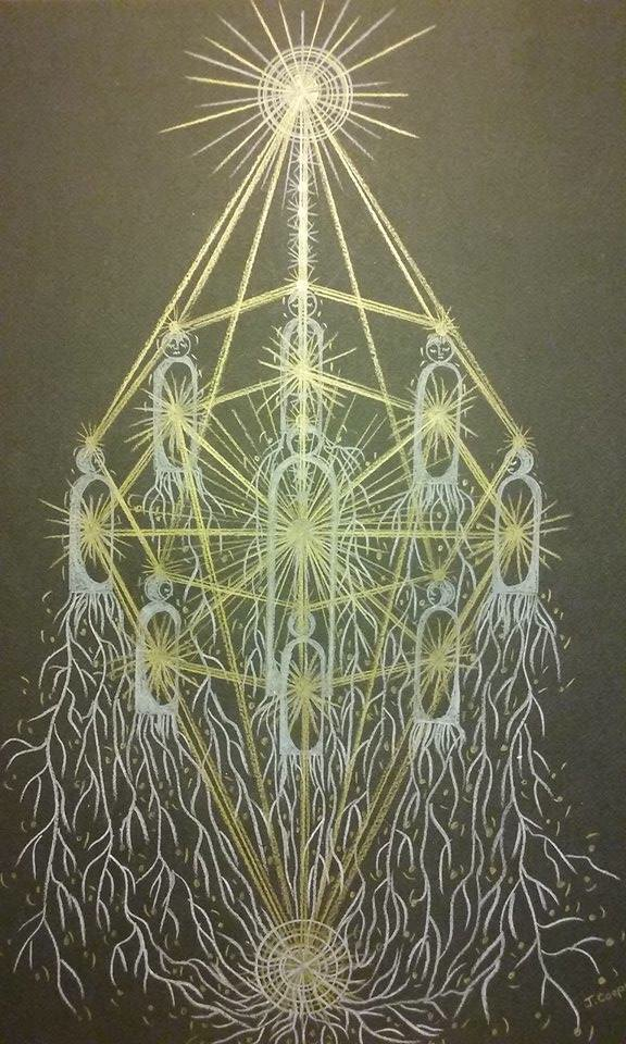 "As we settled into our Multi Dimensional Healing meditation, I feel the grounding energy that surrounds me. With the intention set to receive any information that will allow spiritual growth I give myself to these energies. As time dissolves before me I travel to other dimensions observing from above a group of souls here to work together as one. A center Soul (Bette) captures the Divine Energy to anchor the group. As we unite trough roots descending into Mother Earth's highest source of energy. From above a golden and white light radiates down to the heart of each soul and within each soul there is a sharing of this Divine Light. 'As above unites with as below' in perfect harmony connecting our souls to each other. As we also connect our knowledge to the source above we download all information needed to grow spiritually. We are all one in this sacred geometry of light."