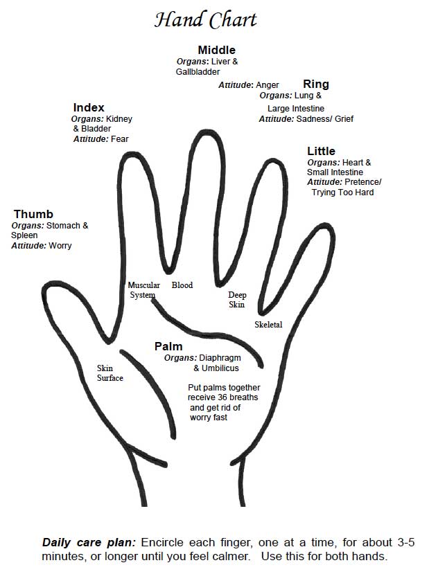 • Also, holding your fingers every day (page 8) can help to keep the organ energies balanced, and release stored up emotions, allowing you to ‘be the best you can be’.