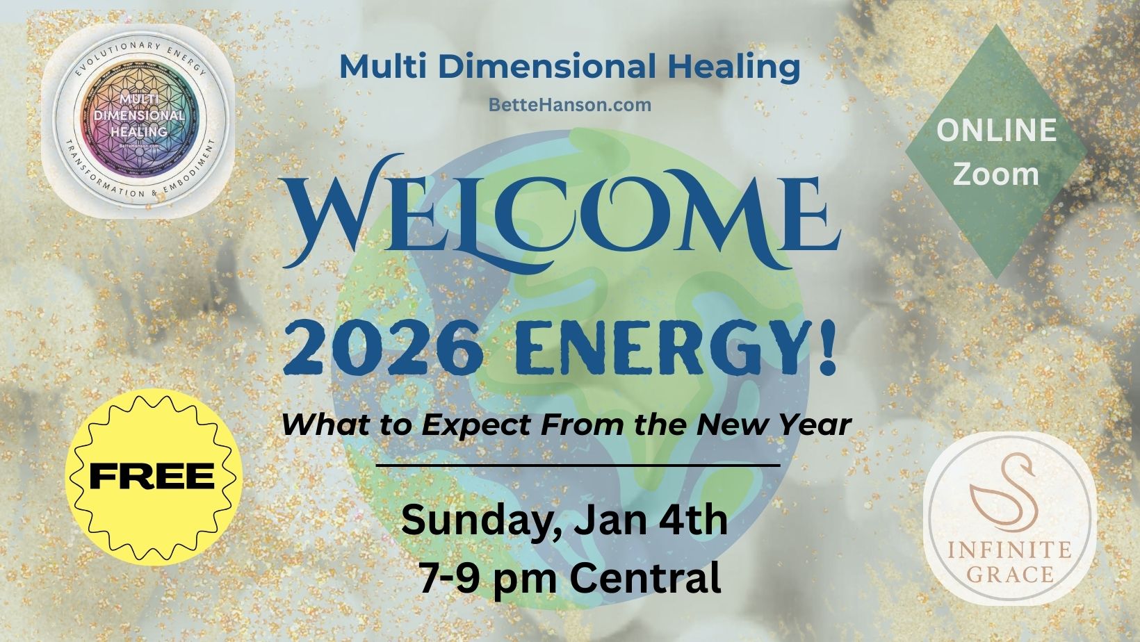An open conversation about what is shifting personally and collectively, with space for shared inquiry and a sample Infinite Grace energy healing. This gathering offers a felt sense of the energetic landscape of 2026 and an opportunity to ask questions, explore theories and experience for yourself whether the deeper work ahead resonates for you.