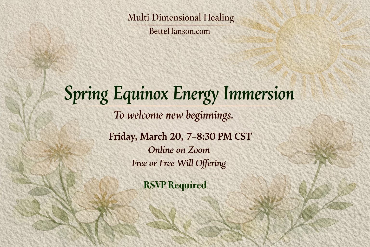 Bette Hanson is a gifted healer who has helped me access the most uncomfortable parts of myself that were ready to be embraced and transformed. It's heavy lifting, yet I'm left with an overwhelming sense of Peace and Grace." — M.Y., Palm Desert, CA