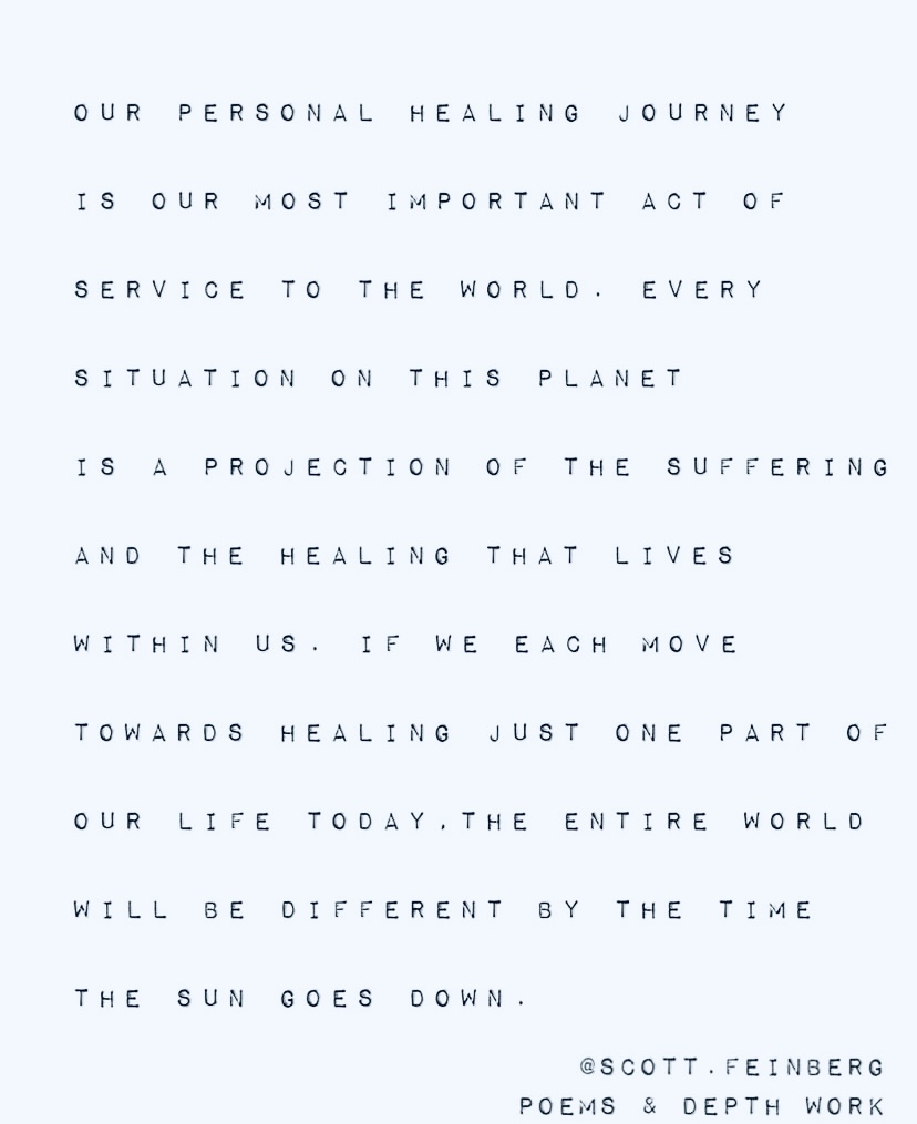 Our culture is one of widespread disconnect. There is a need for transformative healing to make the unconscious conscious. Humanity has forgotten that everything is interconnected. We walk around asleep to a greater reality.